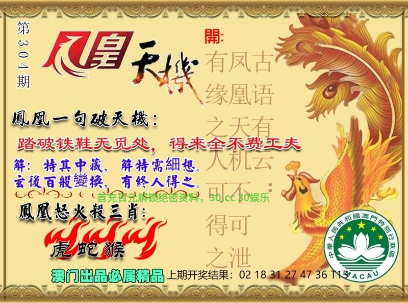 304期:凤凰一句破天机:踏破铁鞋无觅处,得来全不费工夫
