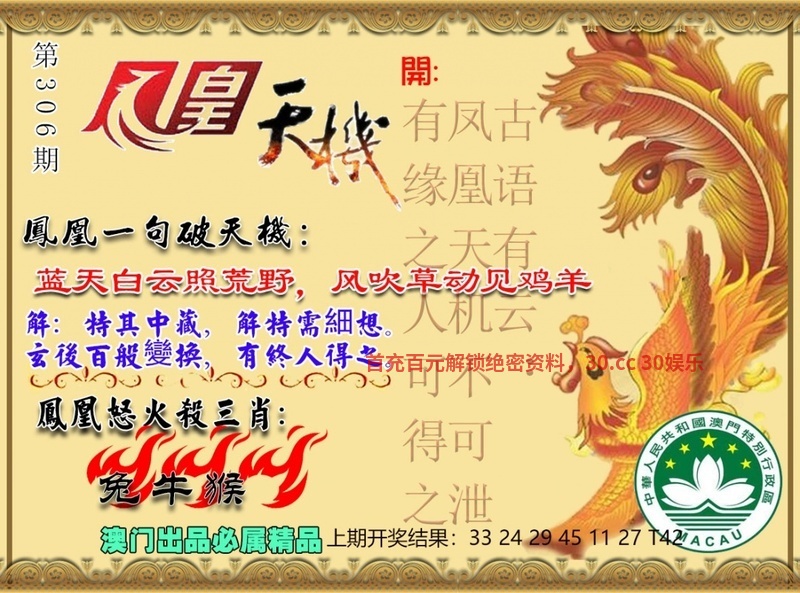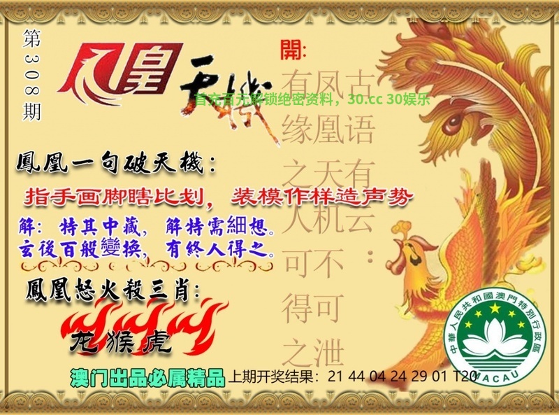 309期:凤凰一句破天机:一四秋悲春更悲,梦取二八定好运